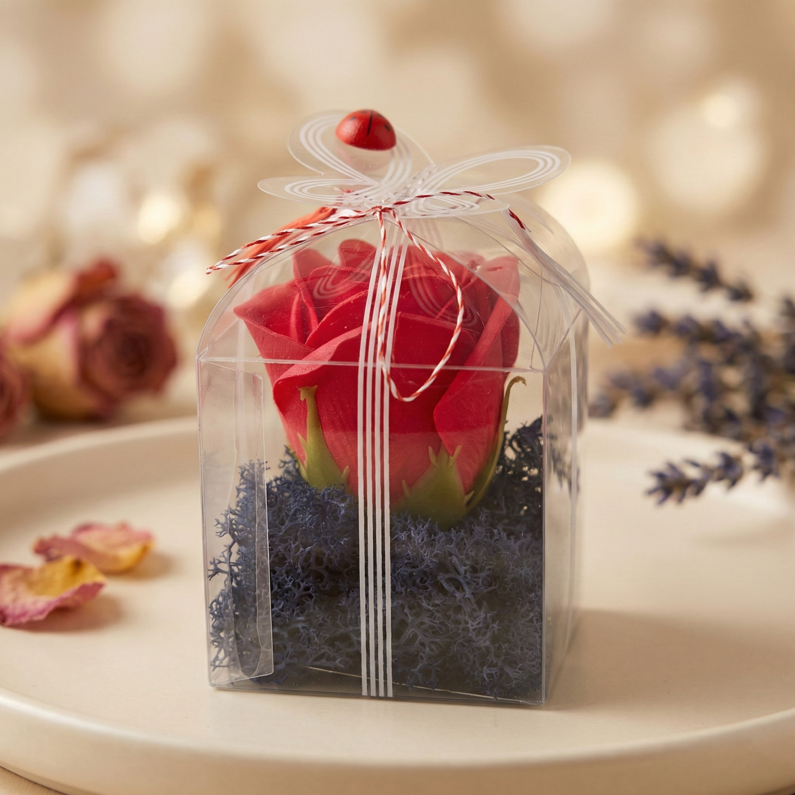 Simbol al pasiunii și iubirii, acest trandafir roșu din săpun, așezat pe un pat de licheni naturali, este alegerea perfectă pentru Mărțișor, aniversări, Valentine’s Day sau surprize romantice. Prezentat într-o cutie elegantă din acetofan, acest cadou oferă un gest rafinat și emoționant, care va fi apreciat mult timp. Alege un cadou atemporal, simbol al dragostei eterne!